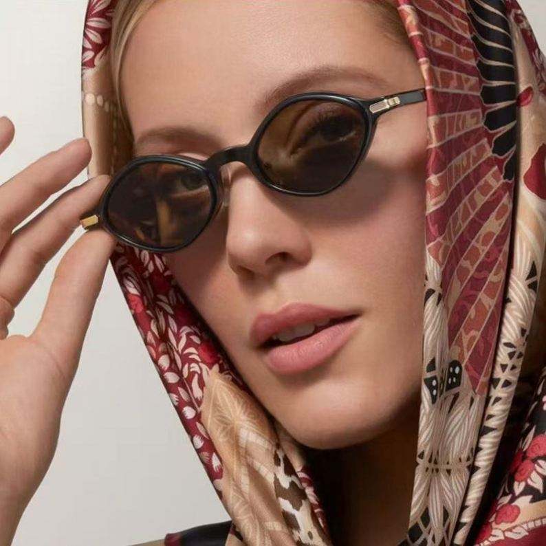 แว่นกันแดดทรงรูปไข่แฟชั่นทันสมัยปี 2025 สำหรับผู้ชายและผู้หญิง กรอบเล็กทรงเหลี่ยม ป้องกันรังสียูวี 400 รับทำโลโก้ตามสั่ง