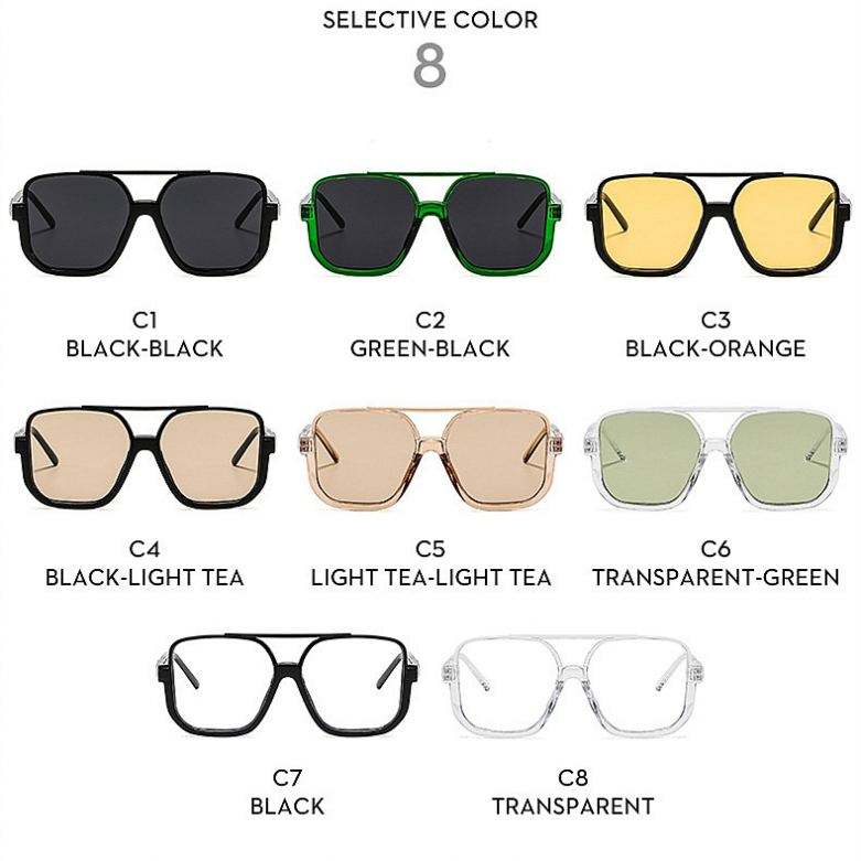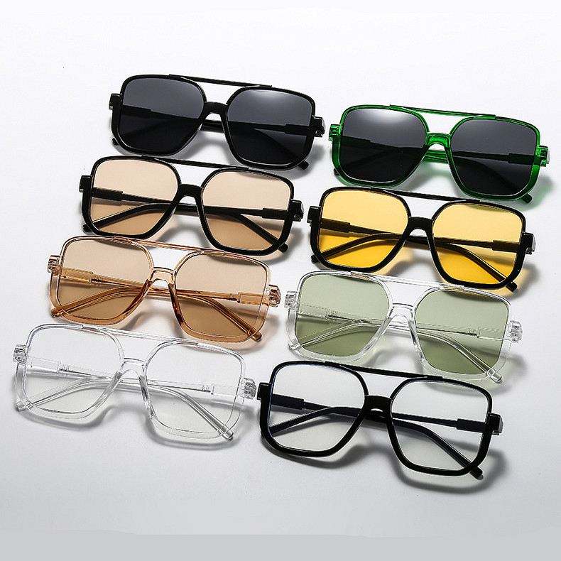 แว่นกันแดดทรงนักบินกรอบใหญ่ รุ่นวินเทจ 2025 แบบสองบริดจ์ ป้องกันรังสียูวี 400 วัสดุ PC สำหรับผู้ชายและผู้หญิง รับทำโลโก้ตามสั่ง