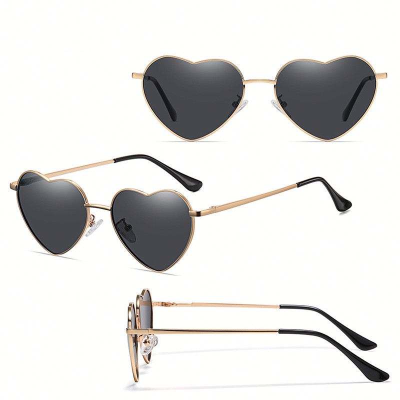 แว่นกันแดดโพลาไรซ์โลหะวินเทจปี 2025 พร้อมโลโก้สั่งทำ สำหรับขับรถ ป้องกันรังสียูวี 40 เลนส์กระจกสีสันสดใส รูปหัวใจ สำหรับผู้หญิง