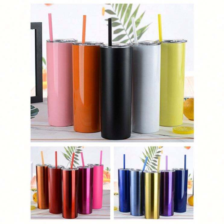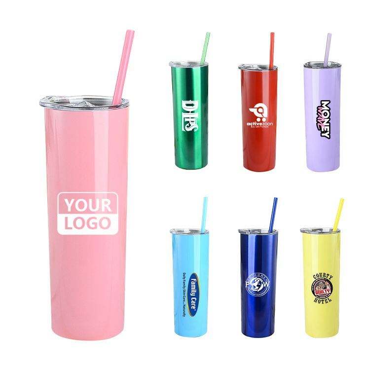 แก้วน้ำสแตนเลสเก็บความร้อนความเย็น ขนาด 20 ออนซ์ แบบตรง ผนังสองชั้น สำหรับสกรีนโลโก้ พร้อมหลอดและฝาปิด