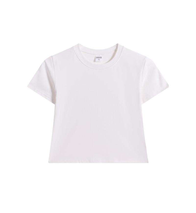 เสื้อยืดผู้หญิงคอโอ ทรงครอป ผ้าคอตตอนผสมสแปนเด็กซ์ ระบายอากาศได้ดี ทรงเข้ารูป สไตล์ลำลอง น้ำหนัก 230 แกรม รับสกรีนโลโก้