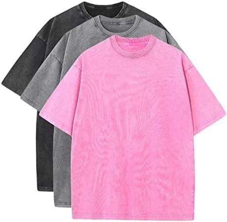 เสื้อยืดโอเวอร์ไซส์ผู้ชาย3แพ็คเสื้อวินเทจเสื้อยืดผ้าฝ้ายหลวมแขนสั้นลำลองซักกรดเสื้อสำหรับทุกเพศโลโก้ออกแบบได้เอง