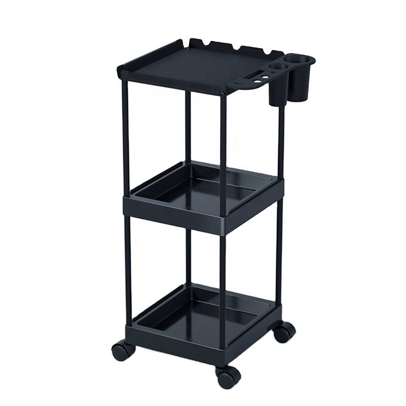 รถเข็นเสริมสวย 3 ชั้น สแตนเลสอย่างดี ล้อเลื่อน 4 ล้อ สำหรับร้านเสริมสวย พร้อมที่เก็บอุปกรณ์ต่อผม สีดำ รับทำโลโก้ตามสั่ง