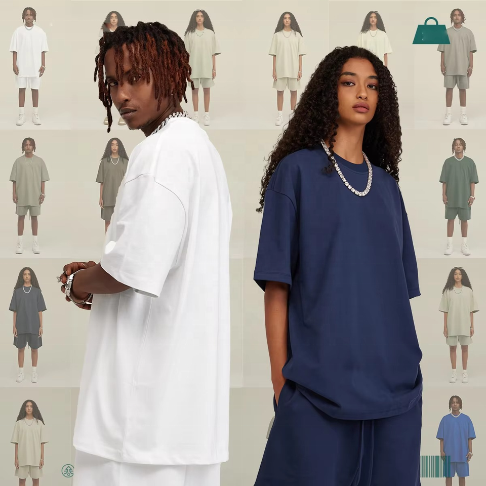 ชุดเสื้อยืดผ้าฝ้าย2ชิ้นสำหรับผู้ชายผ้าคอตต้อนพิมพ์ลายแนวสตรีท305gsm ทันสมัยโลโก้ตามสั่ง