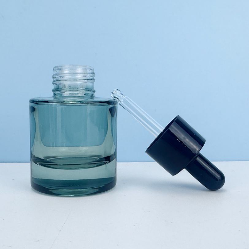 ขวดแก้วใสทรงกลมไหล่แบนสำหรับน้ำมันใส่ผม เซรั่มเครื่องสำอาง ขนาด 30 มล. 50 มล. 100 มล. พร้อมหัวปั๊มหยดและโลโก้สั่งทำได้