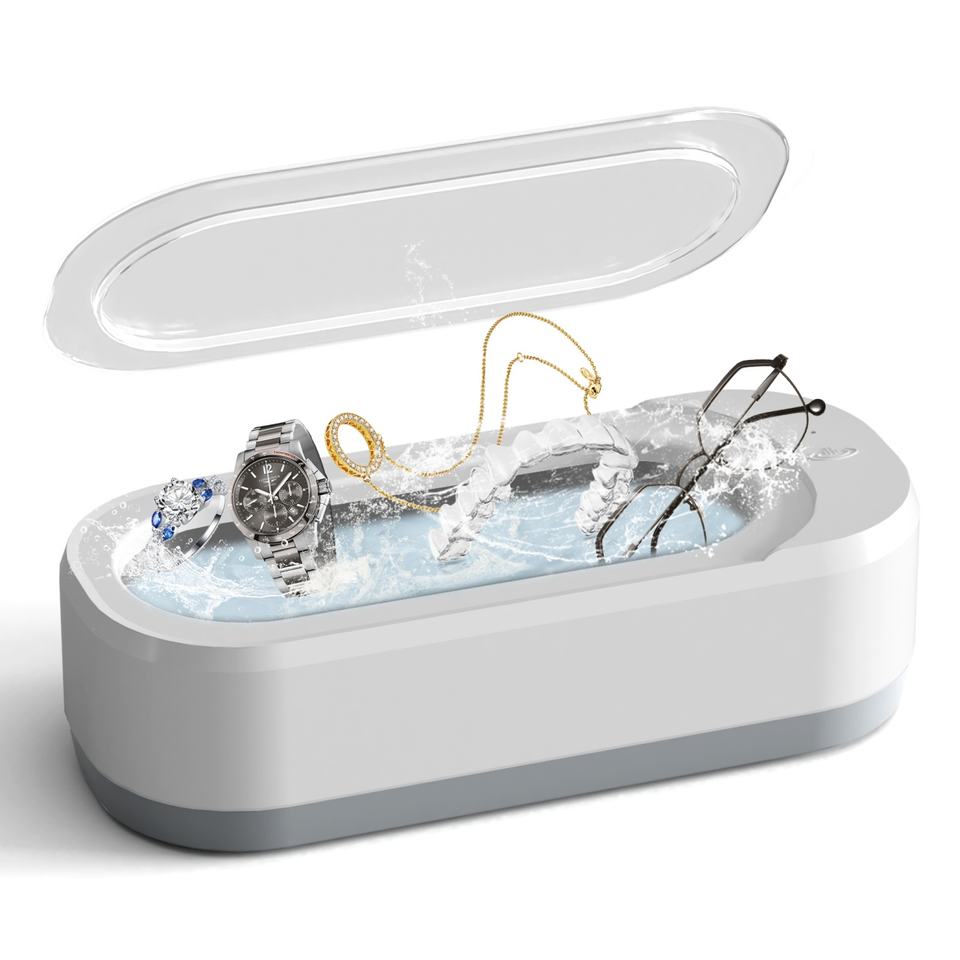 เครื่องทำความสะอาดอัลตราโซนิกแบบพกพาขนาด 350 มล. พร้อมโลโก้สั่งทำพิเศษ ความถี่ 46 กิโลเฮิรตซ์ สำหรับทำความสะอาดแว่นตา เครื่องประดับ นาฬิกา และอุปกรณ์ป้องกันปาก