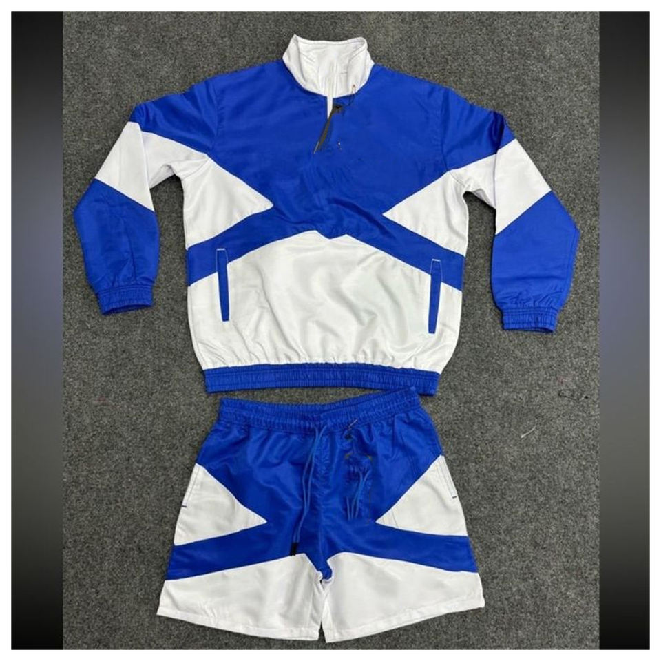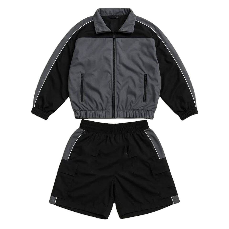 ชุดวอร์มไนลอนผู้ชายพิมพ์ลายโลโก้ 3 มิติ สไตล์วินเทจ พร้อมเชือกผูกเอว แจ็คเก็ตซิปแบบสองชิ้น กันลม สำหรับเล่นกีฬา รับผลิตแบรนด์ส่วนตัว