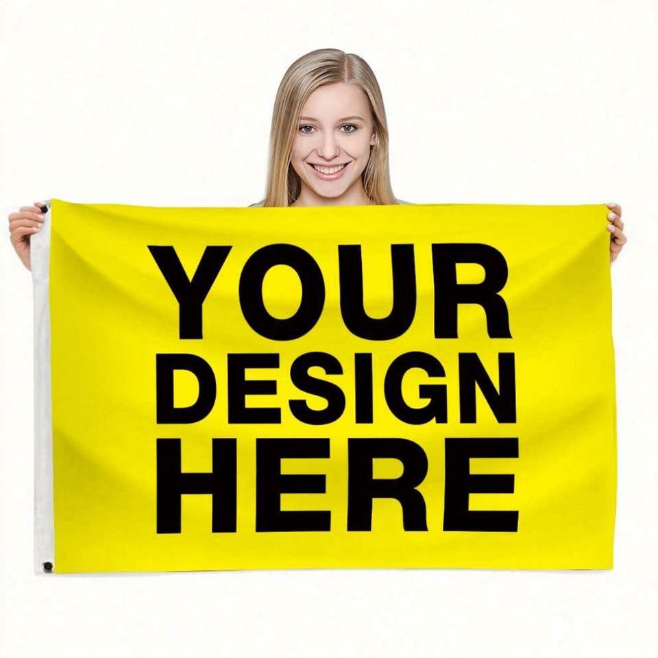 ธงป้ายพิมพ์ดิจิทัลขนาดใหญ่ 3x5 ฟุต แบบสองด้าน/ด้านเดียว พร้อมห่วงตาไก่ พิมพ์โลโก้ตามสั่ง