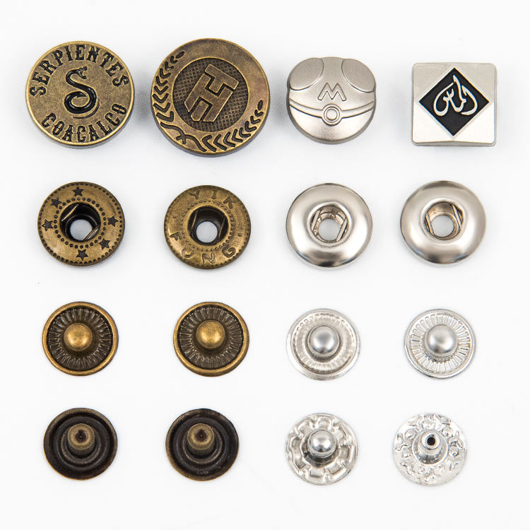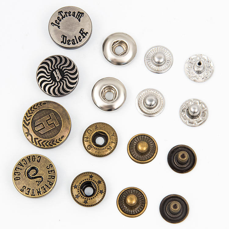 กระดุมโลหะผสมสังกะสีแบบสแนป 4 ส่วน ลายวินเทจ พร้อมโลโก้สั่งทำพิเศษด้วยเทคนิคการชุบแบบพิเศษ