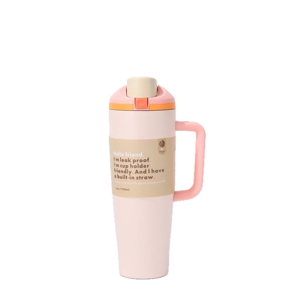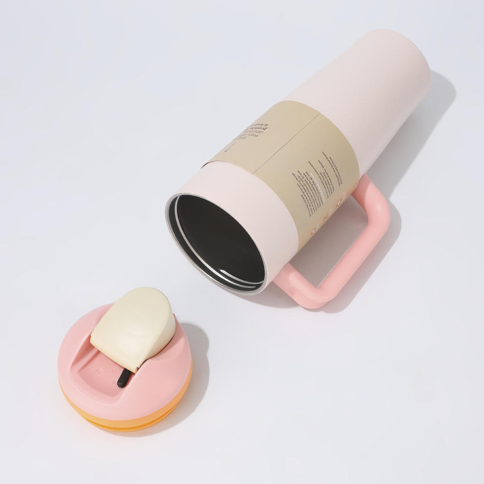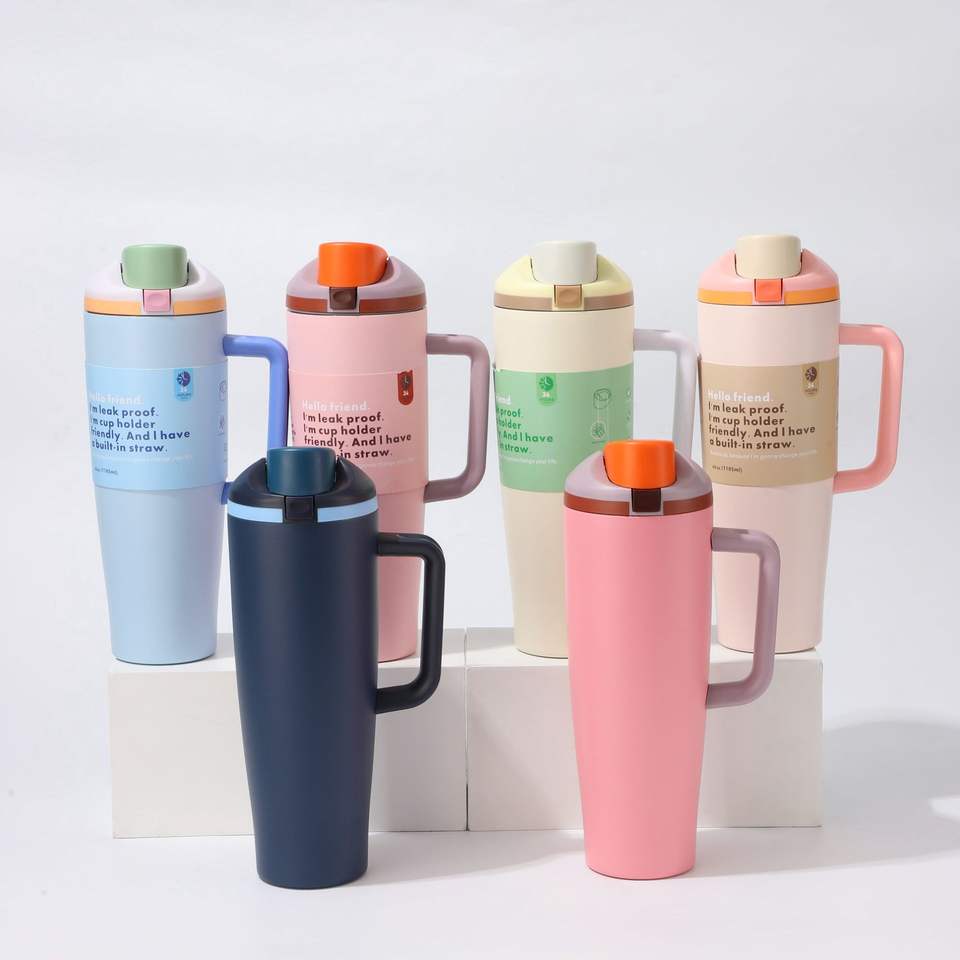 แก้วเก็บความเย็นสุญญากาศแบบมีหูจับ ขนาด 40 ออนซ์ สแตนเลสสตีล พร้อมฝาปิดแบบ Freesip สำหรับเดินทาง พิมพ์โลโก้ได้