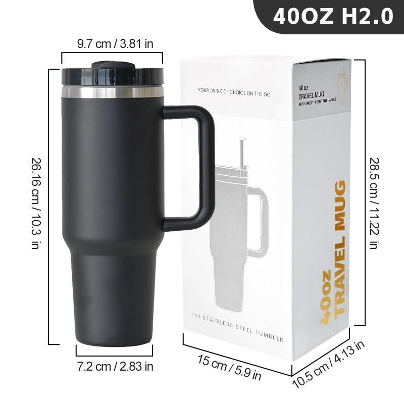 แก้วกาแฟแบบพกพาขนาด 40 ออนซ์ สแตนเลสสตีลสองชั้น พร้อมหูจับและหลอดดูด สกรีนโลโก้ได้