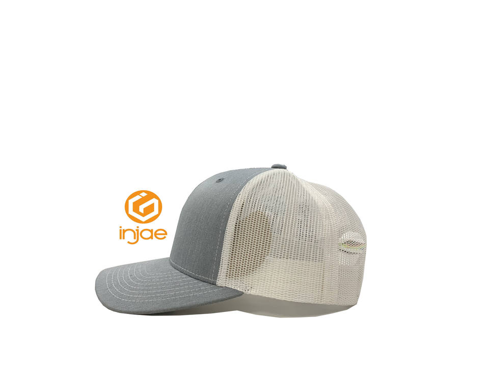 หมวกแก๊ปทรงทรัคเกอร์ 5 ชิ้น ผ้าสีเทาเมลันจ์ ตาข่ายด้านหลัง ระบายอากาศได้ดี ปรับขนาดได้ เหมาะสำหรับของขวัญส่งเสริมการขายขององค์กร พร้อมปักโลโก้ตามสั่ง