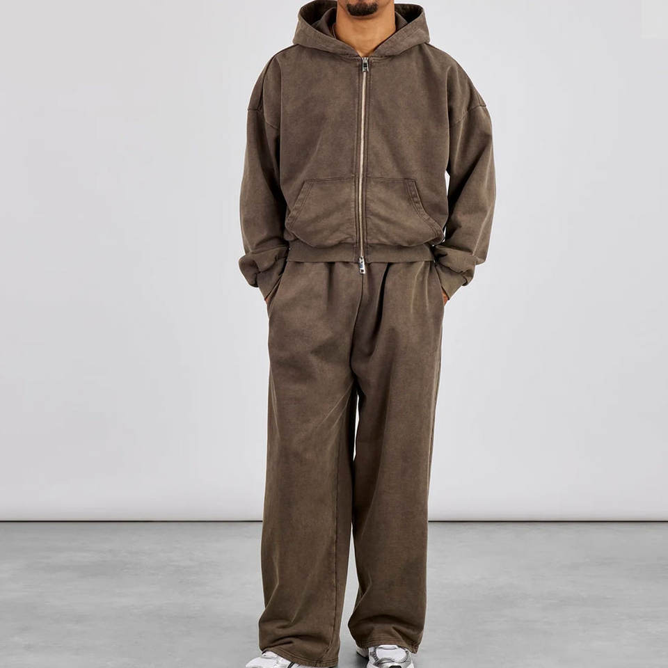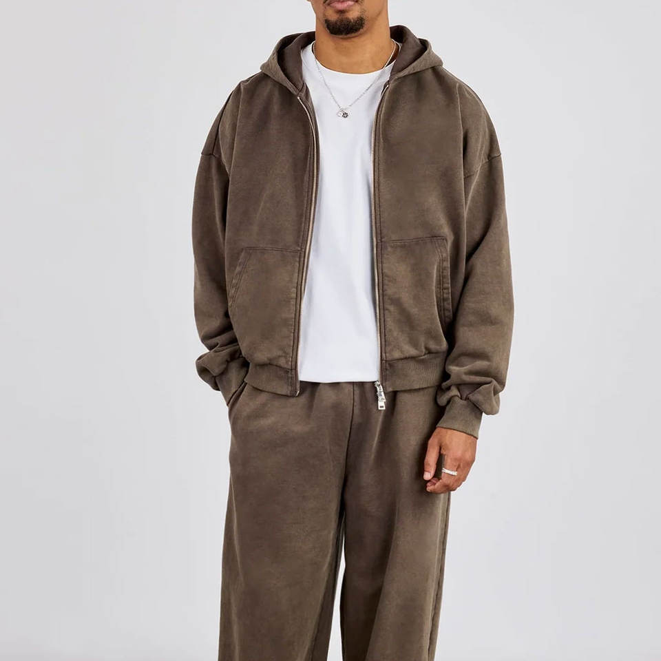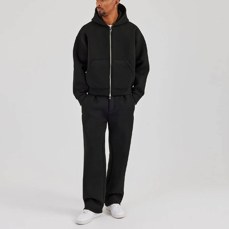 ชุดฮู้ดดี้ซิปทรงบ็อกซี่ผ้าคอตตอน 100% หนัก 500 GSM พร้อมโลโก้สั่งทำ และกางเกงจ็อกเกอร์ ชุดแทรคสูทคุณภาพสูงสำหรับผู้ชาย สไตล์สตรีทแวร์