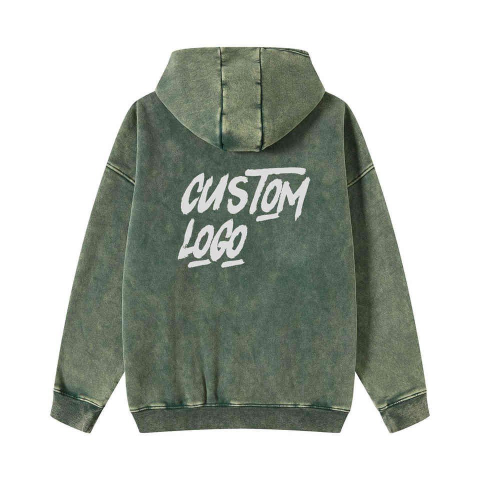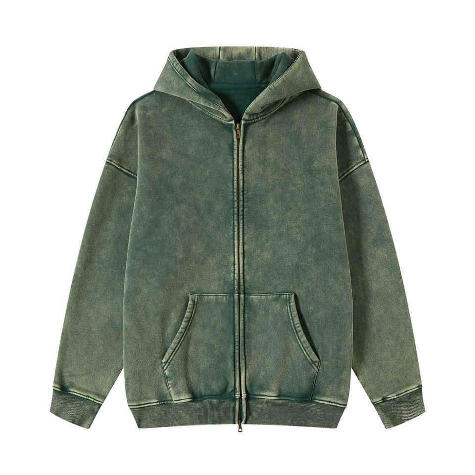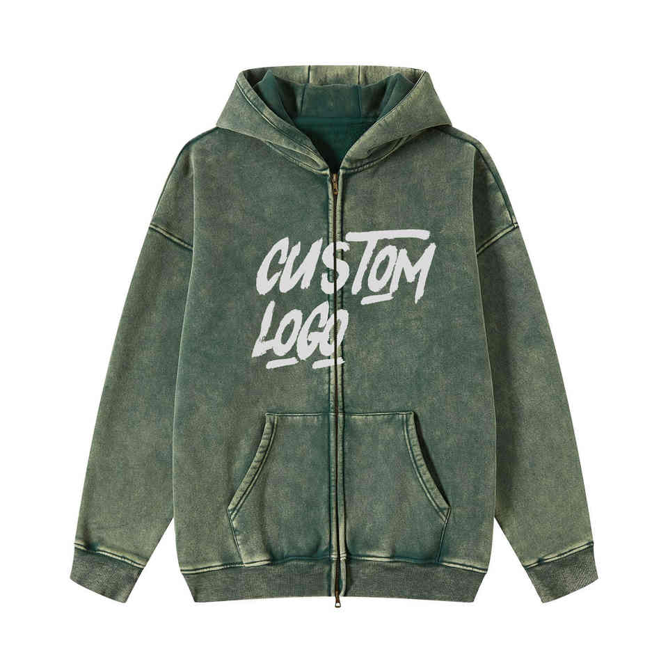 เสื้อฮู้ดซิปสีเขียวฟอกกรด ผ้าฝ้าย 100% หนา 500 กรัม พิมพ์ลายโลโก้ตามสั่ง ทรงโอเวอร์ไซส์ ลายเรียบ แต่งปะ แต่งลายปัก สไตล์วินเทจ สำหรับฤดูใบไม้ร่วง