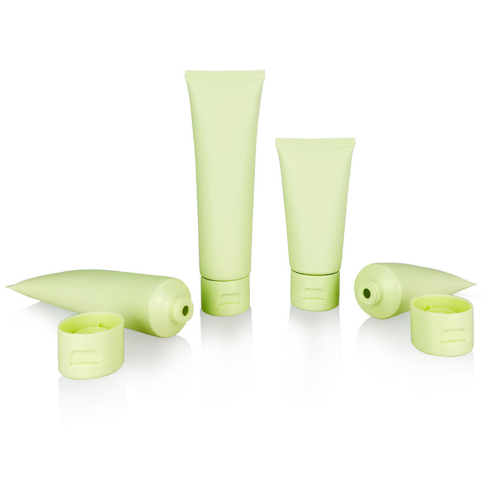 หลอดบีบพลาสติกสีเขียวขนาด 50 มล. 100 มล. สำหรับบรรจุภัณฑ์เครื่องสำอางแบบพกพา ครีมบำรุงผิวหน้าและผิวกาย ขวดล้างหน้า พร้อมโลโก้สั่งทำได้