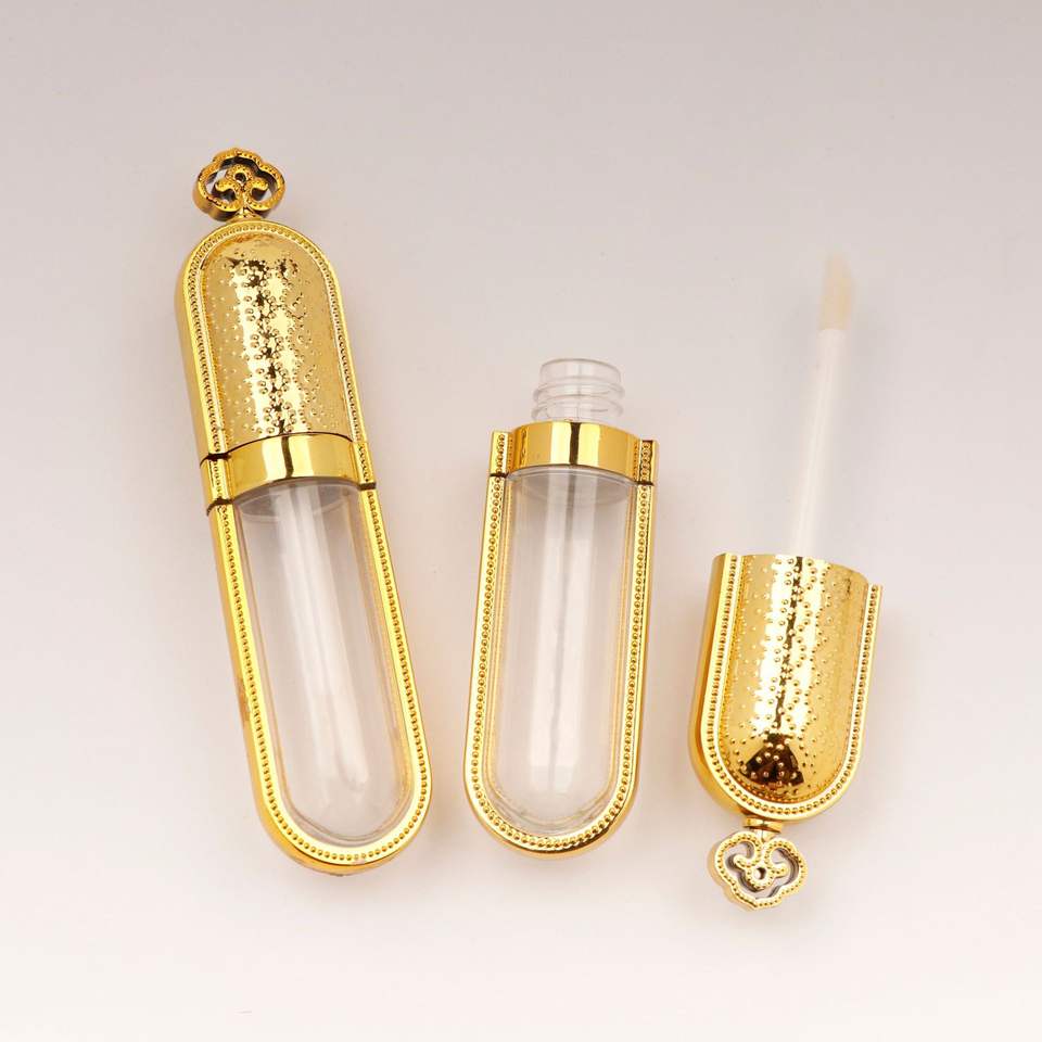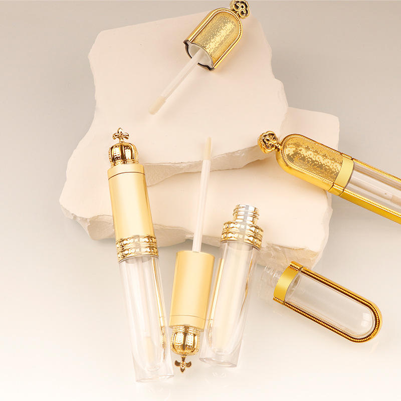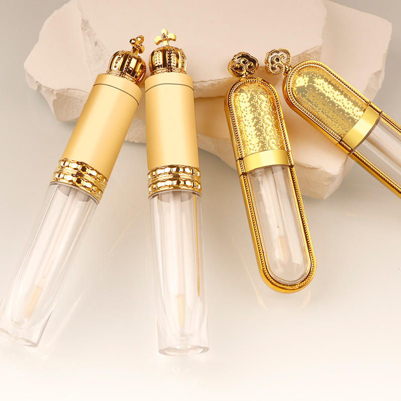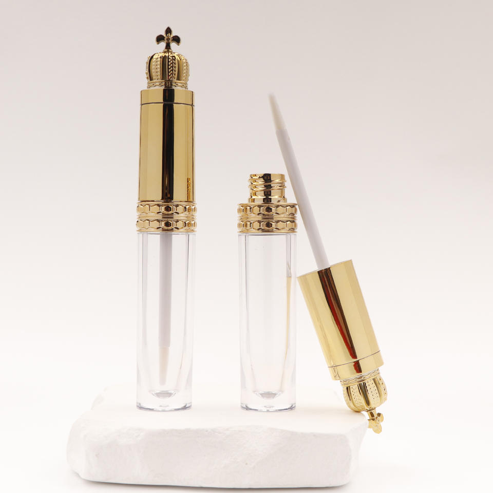 หลอดลิปกลอสเปล่าหรูหราสีทอง 8 มล. พร้อมโลโก้สั่งทำพิเศษ หลอดลิปกลอสทรงมงกุฎ ดีไซน์ไม่ซ้ำใคร บรรจุภัณฑ์เครื่องสำอาง