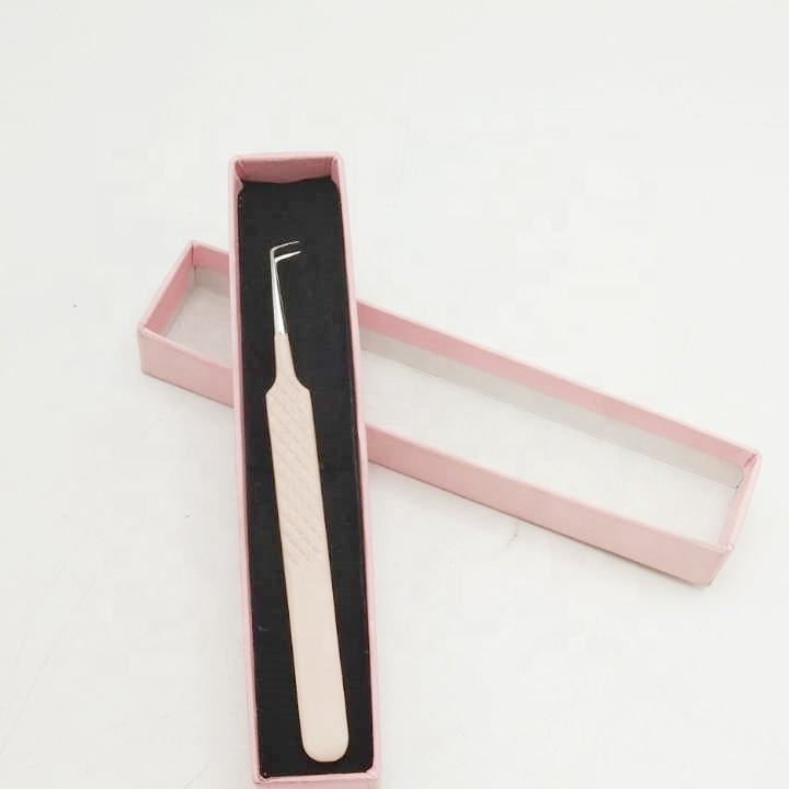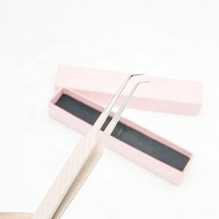 แหนบติดขนตาปลายแหลม 90 องศา โลโก้สั่งทำได้ คุณภาพสูง เคลือบสีฝุ่น สแตนเลสอย่างดี ระดับมืออาชีพ ใช้งานได้ยาวนาน สีชมพูอ่อน