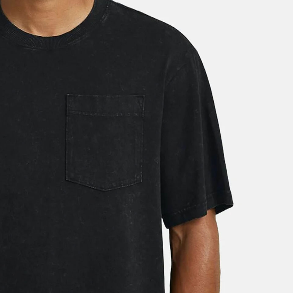เสื้อยืดสำหรับผู้ชายเสื้อล้างกรดแบบมีความยาวปกติของผู้ชายเสื้อล้างกรดโลโก้ออกแบบได้ตามต้องการ