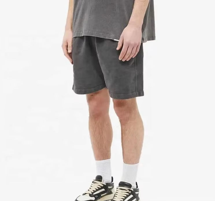 กางเกงขาสั้นผ้าฝ้ายหนาสำหรับผู้ชายกางเกงขาสั้นผู้ชายแห้งเร็วระบายอากาศได้ดีสไตล์สตรีทสูงปานกลางดีไซน์แบบซีดจางโลโก้ตามสั่ง