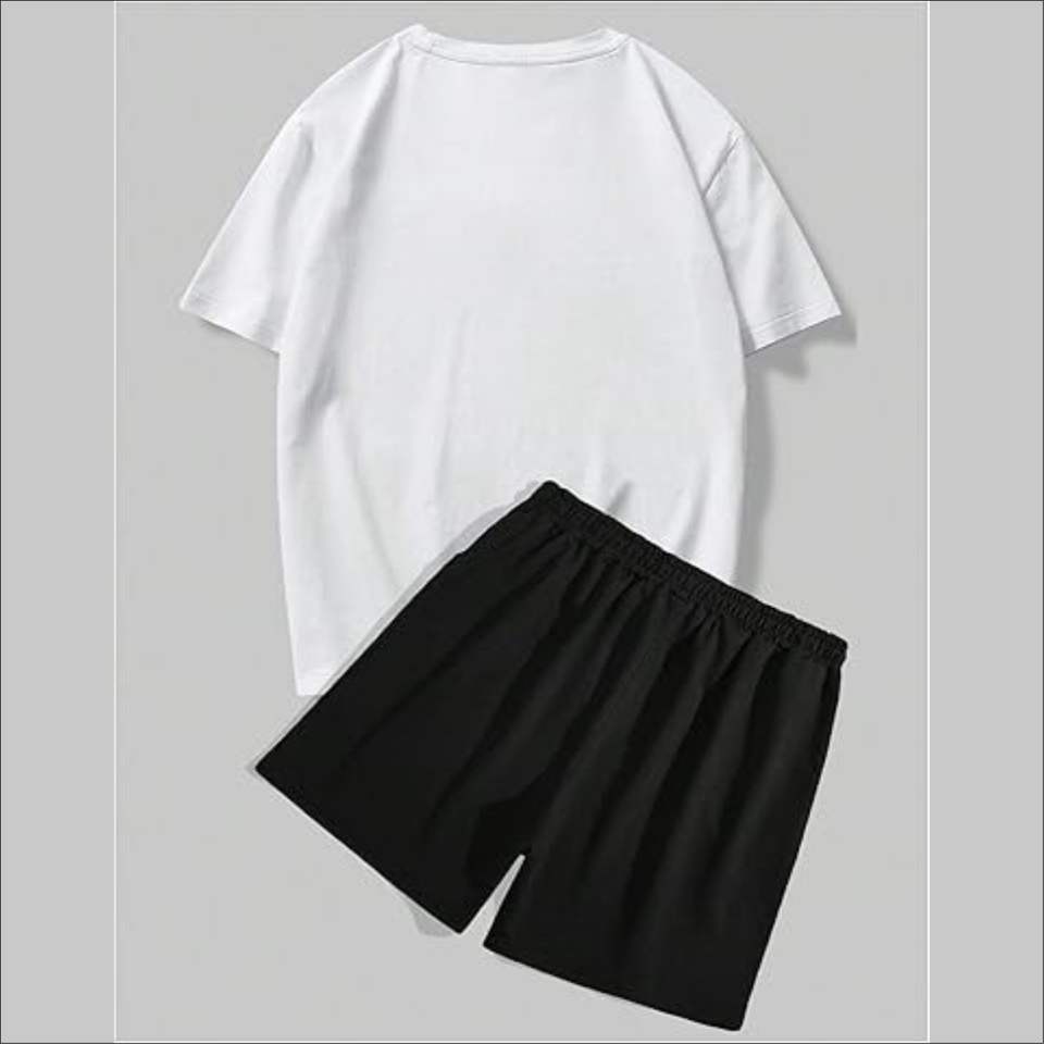 ชุดเซ็ตเสื้อยืดคอกลมและกางเกงขาสั้นผู้ชาย ผ้าฝ้าย 100% คุณภาพสูง ทนทาน ระบายอากาศดี ลวดลายวินเทจฟอกสี แบรนด์ทันสมัย พร้อมโลโก้สั่งทำ