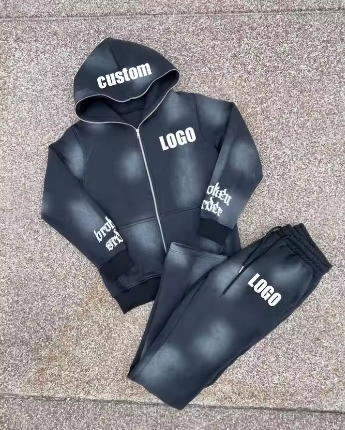 ชุดแทรคสูทลายย้อมสีแบบแอซิดวอช พร้อมโลโก้แบบกำหนดเอง ประดับด้วยคริสตัล ผ้าหนา 420 แกรม ชุดฮู้ดดี้แบบซิป ชุดแทรคสูทลายย้อมสีแบบแอซิดวอช