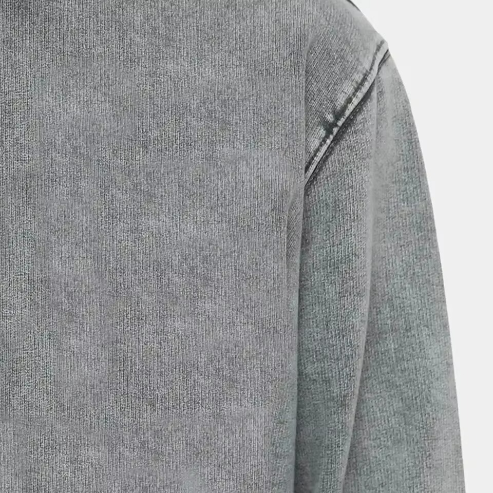 เสื้อฮู้ดดี้สีเทาวินเทจฟอกสีแบบแอซิด พร้อมโลโก้สั่งทำ ให้ความรู้สึกอบอุ่นสบาย เหมาะสำหรับอากาศเย็น สีเทาซีด สไตล์ลำลอง ใส่ได้ทุกวัน