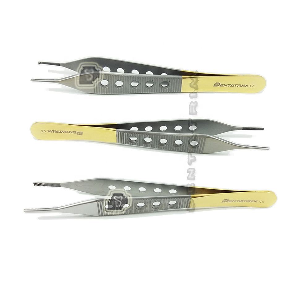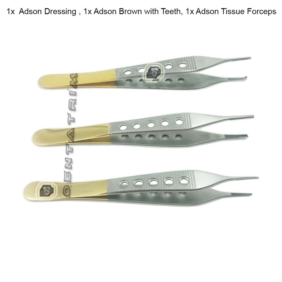Adson คีม TC 12ซม. ชุด3ชิ้นคีมตกแต่งแอดสันสันคีมสีน้ำตาลอุปกรณ์ผ่าตัด