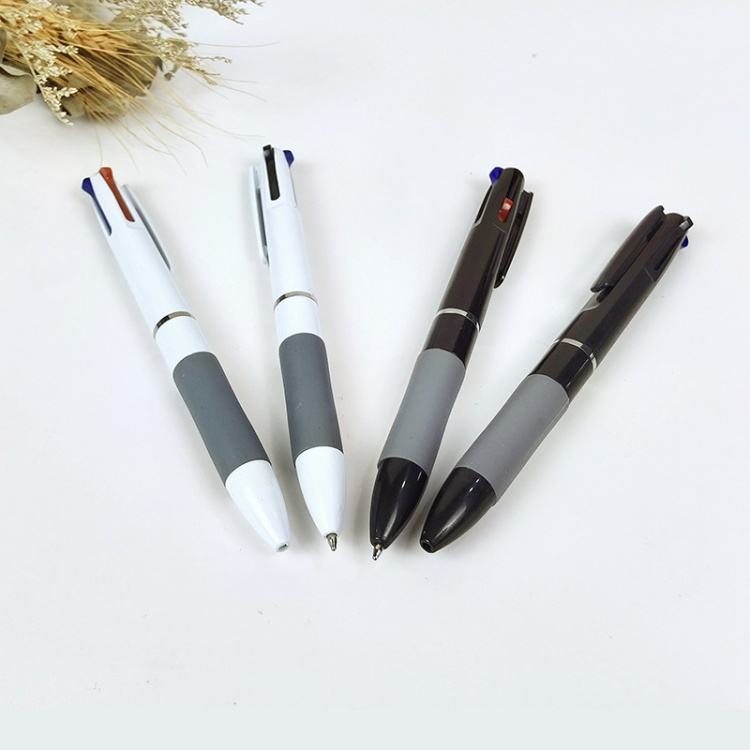 ปากกาโฆษณาโลโก้แบบกำหนดเอง ปากกาลูกลื่นพลาสติก 0.7 มม. ปากกา 3 สีใน 1 ด้าม ของขวัญส่งเสริมการขายสำหรับสำนักงาน ปากกาหลายสี