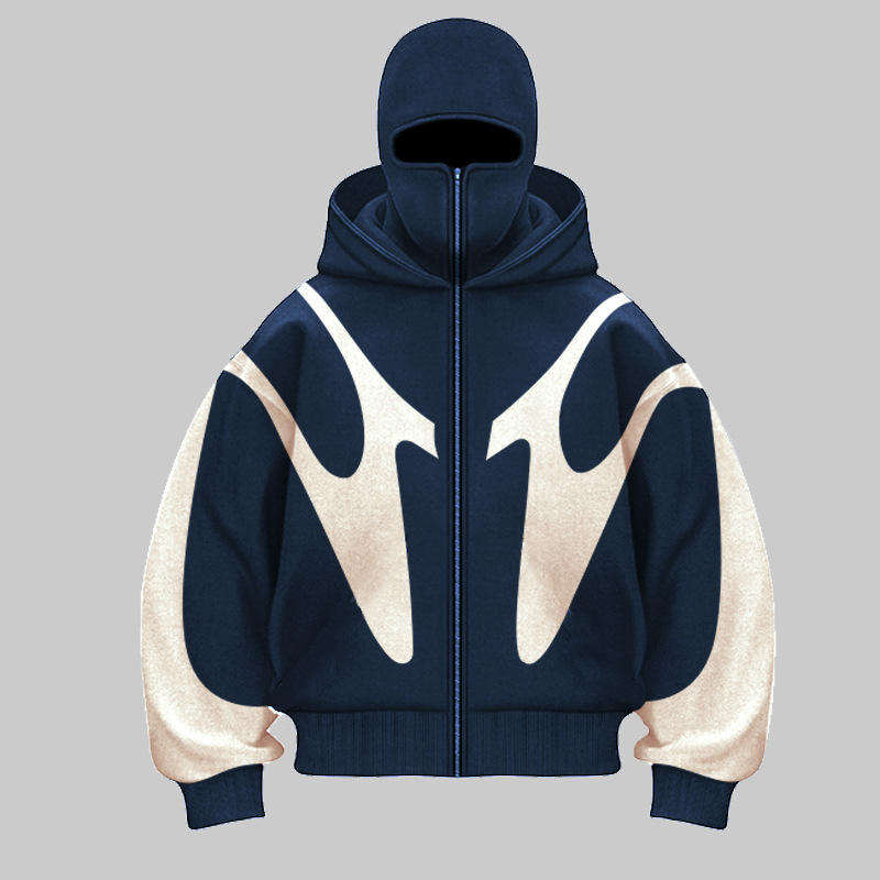 หน้ากากแบบมีฮู้ดสำหรับผู้ชายแบบมีซิปมีรูรอบดวงตาผ้าฟลีซซับในสำหรับเด็กผู้ชายพิมพ์ลายโลโก้ตามสั่ง