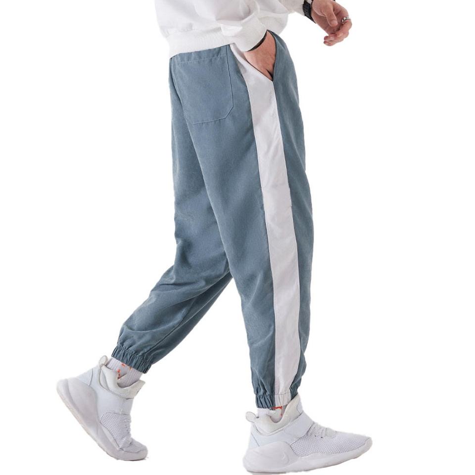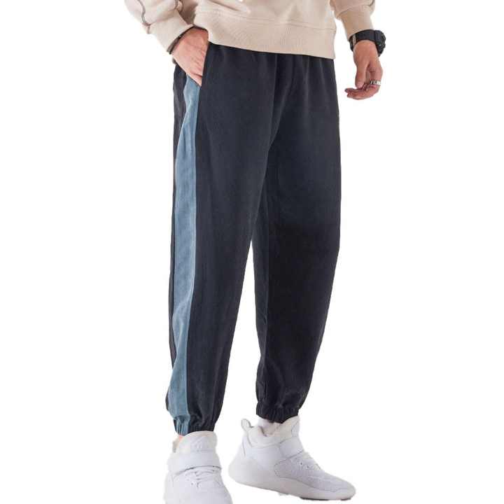 กางเกงขายาวผู้ชายแบบมีโลโก้สั่งทำพิเศษ ขาจั๊มพ์ ผ้าสเวตเตอร์ผสมสีสองสี ยืดได้