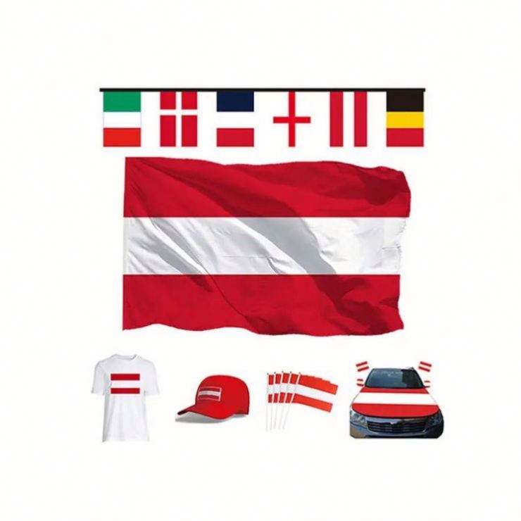 ธงชาติออสเตรียพร้อมโลโก้แบบกำหนดเองสำหรับงานกีฬา - พิมพ์ลายโพลีเอสเตอร์ตามสั่ง ขนาดและพกพาสะดวก