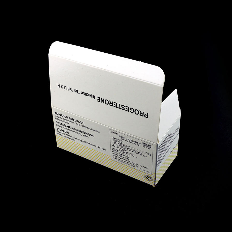 กล่องกระดาษลูกฟูกสำหรับยา แบบพับได้ พร้อมโลโก้สั่งทำ ปั๊มนูน เคลือบด้าน/เงา ทำจากกระดาษรีไซเคิล สำหรับบรรจุยาเม็ด