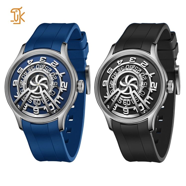 นาฬิกาจักรกลอัตโนมัติโลโก้สั่งทำพิเศษ พร้อมกระจกแซฟไฟร์ทรงโดม 3 มิติ คุณสมบัติการหมุนที่เป็นเอกลักษณ์ สายยางซิลิโคน พร้อมระบบสำรองพลังงาน