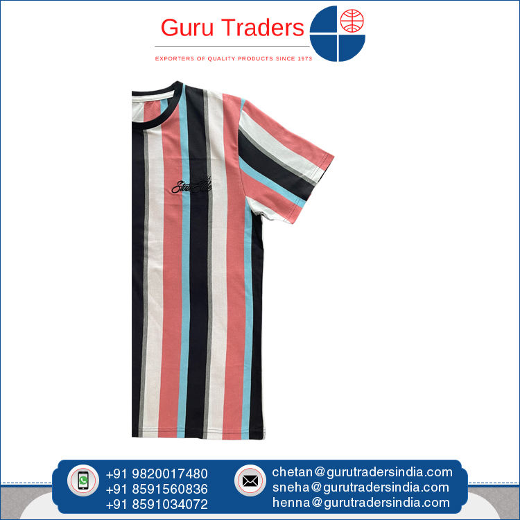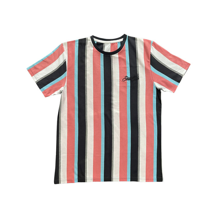 หมายเลขรุ่น:Men's Vertical Stripes T-shirt- WhitePinkBlueBlack
