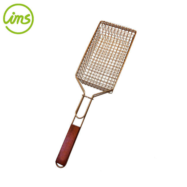 โลโก้ที่กําหนดเองบาร์บีคิวย่างตะกร้าพลิกยางด้ามไม้