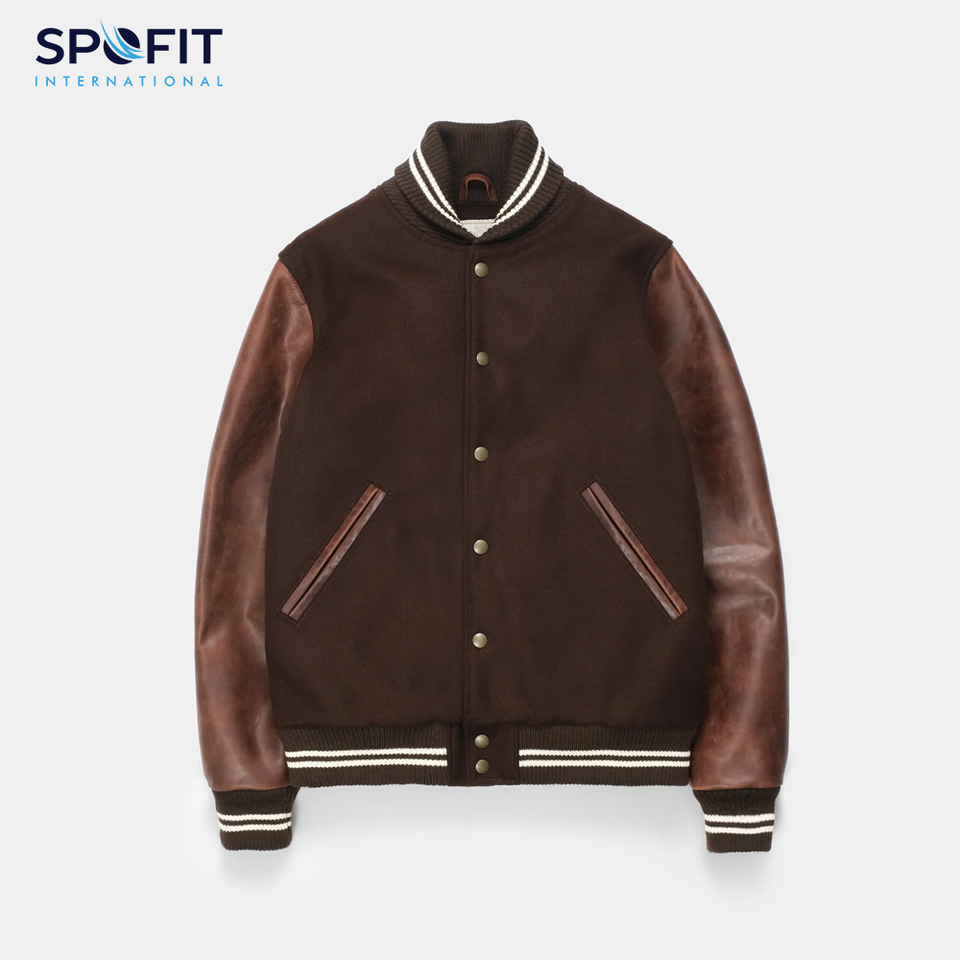 เสื้อแจ็คเก็ตเบสบอลแบบมีปกตั้ง ปักลายด้านหน้า สไตล์วาร์ซิตี้ สำหรับผู้ชาย ฤดูหนาว ออกแบบลายพิมพ์ตามสั่ง พร้อมโลโก้แบบกำหนดเอง