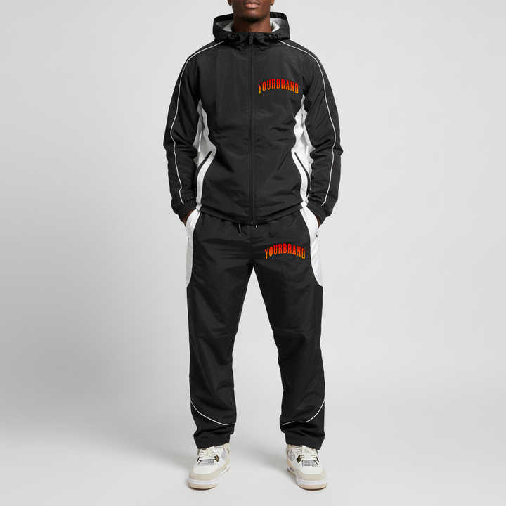 ชุดวอร์มผู้ชายแบบมีซิป น้ำหนักเบา ผ้าโพลีเอสเตอร์ ไนลอน กันลม พิมพ์โลโก้ได้ คุณภาพดีที่สุด ชุดเซ็ตแทรคสูทไนลอนสีตัดต่อ