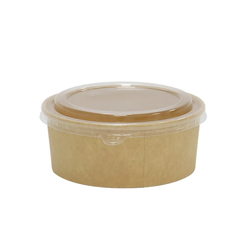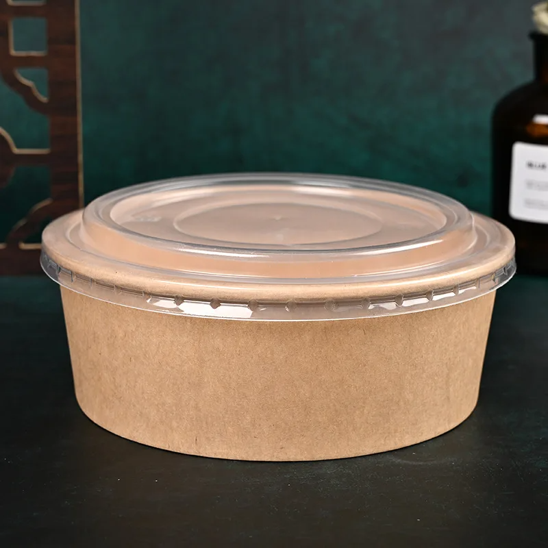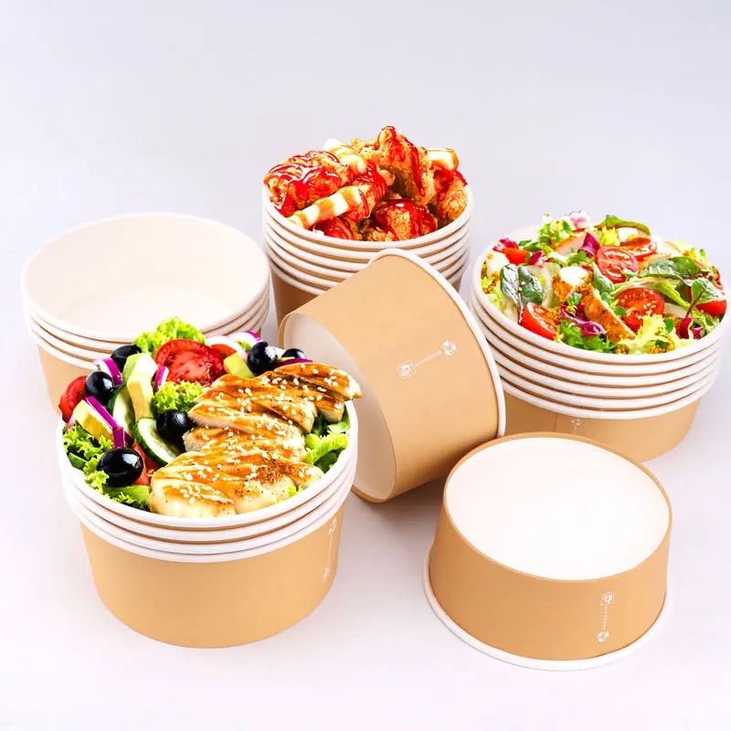 ชามสลัดอาหารกลางวันกระดาษคราฟท์แบบใช้แล้วทิ้งภาชนะใส่อาหารใส่อาหารได้สะดวกทำจากกระดาษคราฟท์แบบย่อยสลายได้โลโก้ได้ตามต้องการ