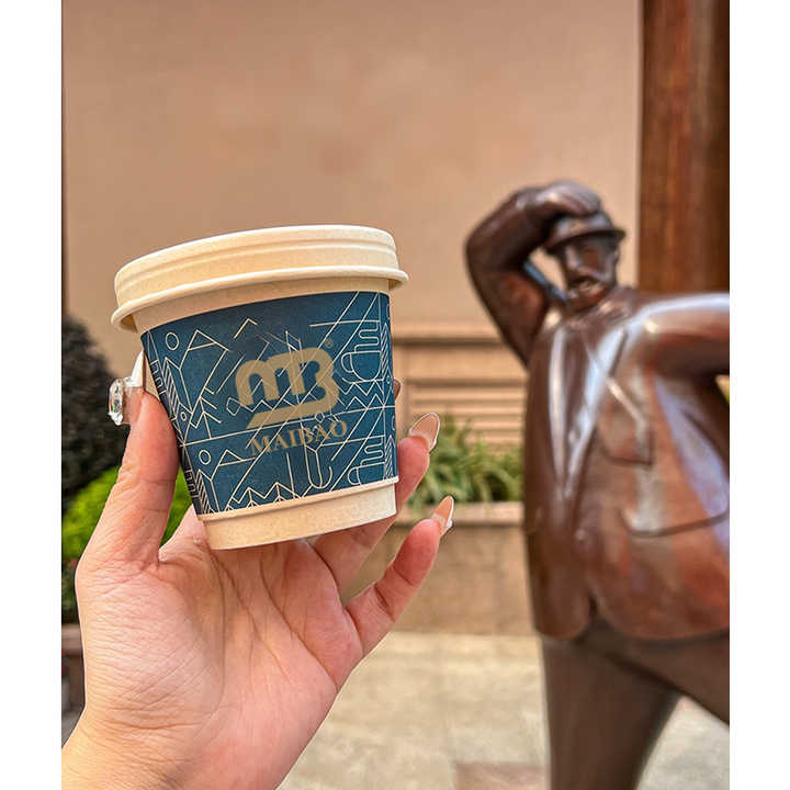 แก้วกาแฟกระดาษคราฟท์ย่อยสลายได้ พิมพ์โลโก้ได้ ผลิตจากชานอ้อย พร้อมฝาปิดแบบแบน