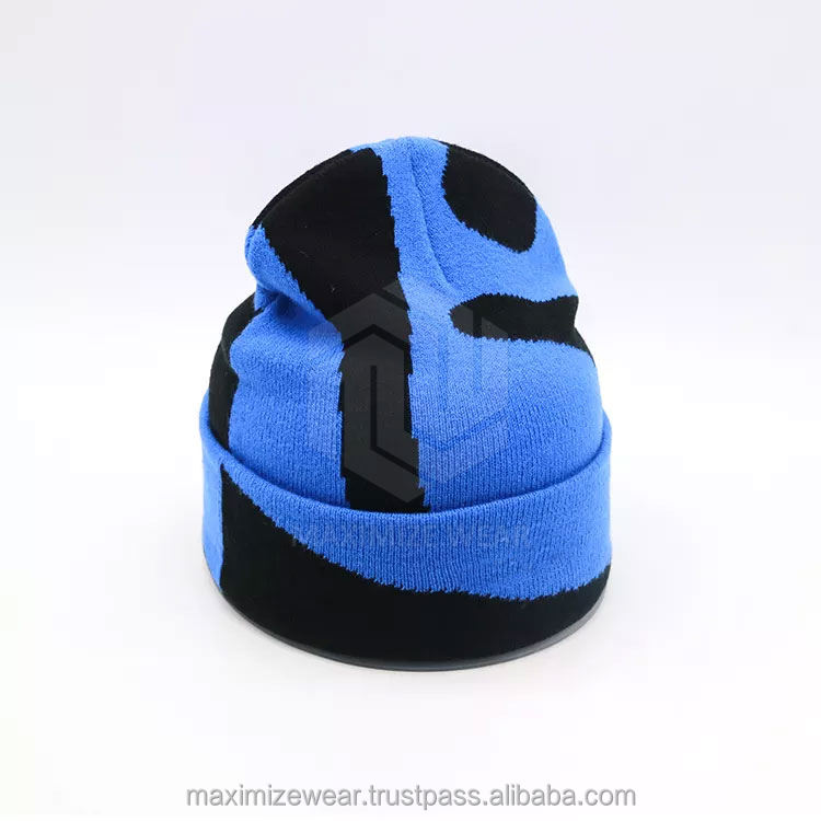 ชื่อผลิตภัณฑ์:หมวกบีนนี่แบบถักติดป้ายหนังหมวกสกีทรงกะโหลก