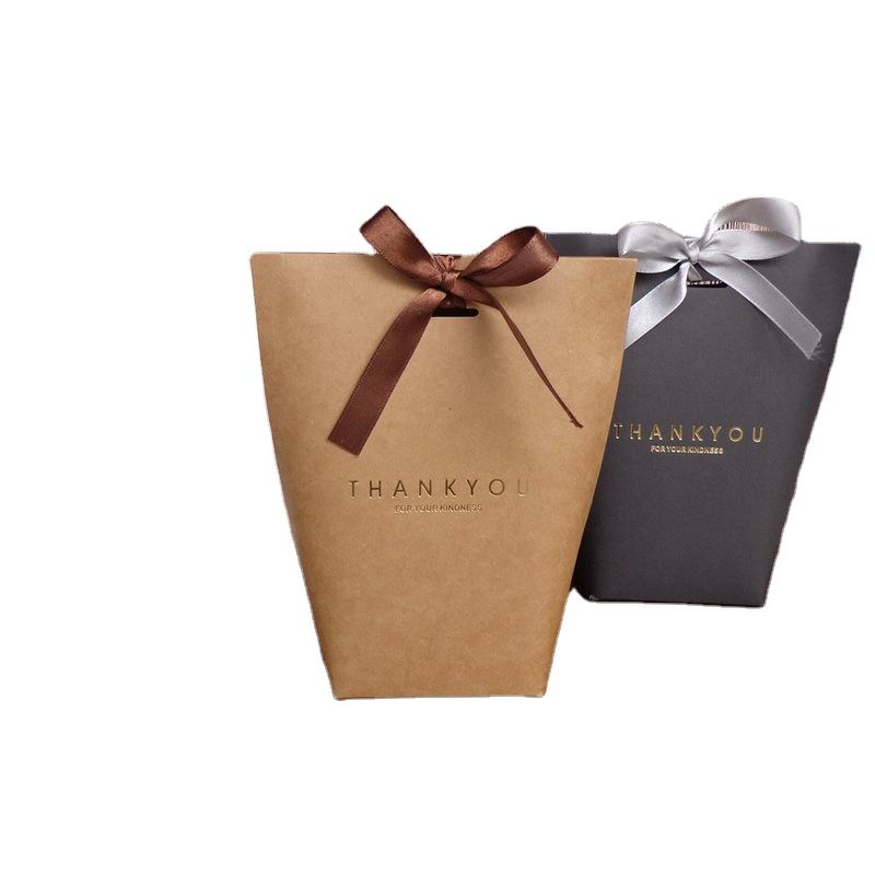 Custom Logo Black Kraft Paper Cardboard Wedding Gift Box Classic Style Candy Bag Ribbon 'Merci' for Thank You Candle Gifts Craft
