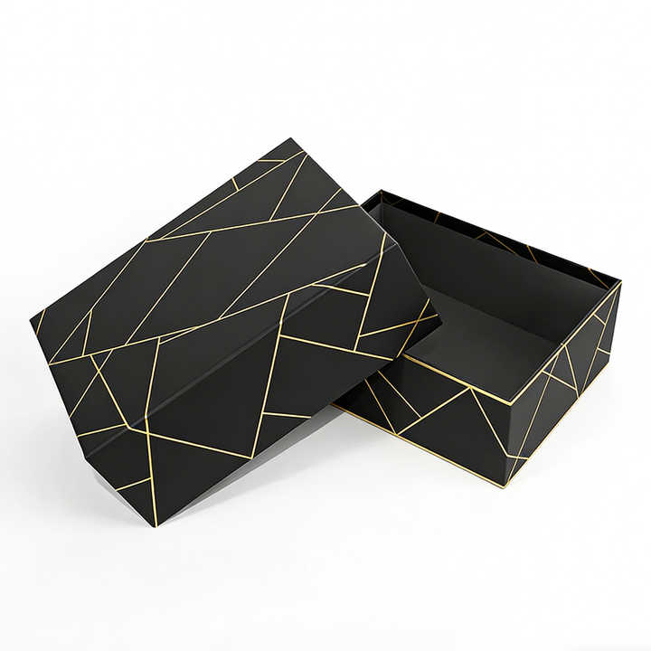 กล่องบรรจุภัณฑ์เครื่องสำอางและน้ำหอมแบบแข็ง ฝาและฐานสีดำ พิมพ์โลโก้ตามสั่ง สำหรับขายปลีก ทำจากกระดาษแข็ง