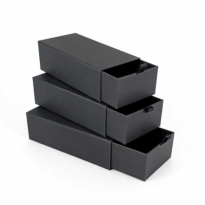 กล่องของขวัญแบบลิ้นชักพกพาได้ ผลิตจากวัสดุรีไซเคิล เป็นมิตรกับสิ่งแวดล้อม แข็งแรง หรูหรา สีดำ พิมพ์โลโก้ตามสั่ง เคลือบด้าน ปั๊มนูน เคลือบยูวี