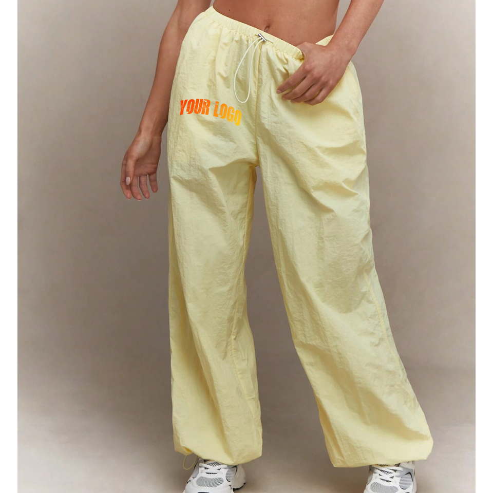 กางเกงจ็อกเกอร์ขาบานสีดำพิมพ์โลโก้ตามสั่ง มีกระเป๋าเยอะ ผ้าโพลีเอสเตอร์/คอตตอน ใส่สบายสำหรับฤดูหนาว แต่งเชือกผูก เอวหลวม ทรงคาร์โก้ สำหรับผู้หญิงและผู้ชาย