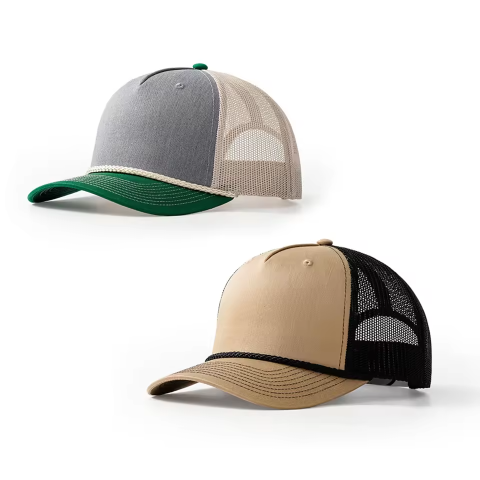 หมวกแก๊ปปักโลโก้แบบกำหนดเอง 5 ชิ้น ผ้าฝ้ายสองสี ปรับขนาดได้ เหมาะสำหรับกีฬาวิ่ง เบสบอล ปีกโค้ง ด้านหลังเป็นตาข่าย