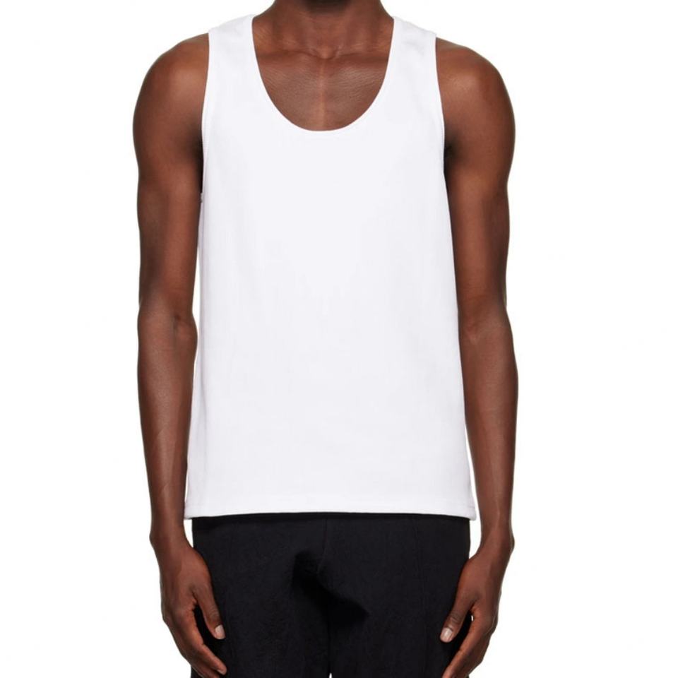 เสื้อกล้ามคอกลมผ้าริบสีขาวสำหรับผู้ชาย พร้อมโลโก้แบบกำหนดเองได้