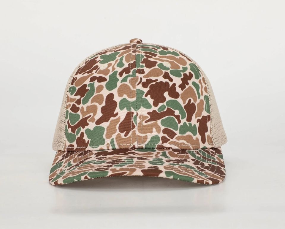 หมวกแก๊ปปีกหมวกทรักเกอร์ลายพรางสีส้มออกแบบโลโก้ได้ตามต้องการหมวกกีฬาหมวกคุณพ่อจากโรงงานเวียดนาม