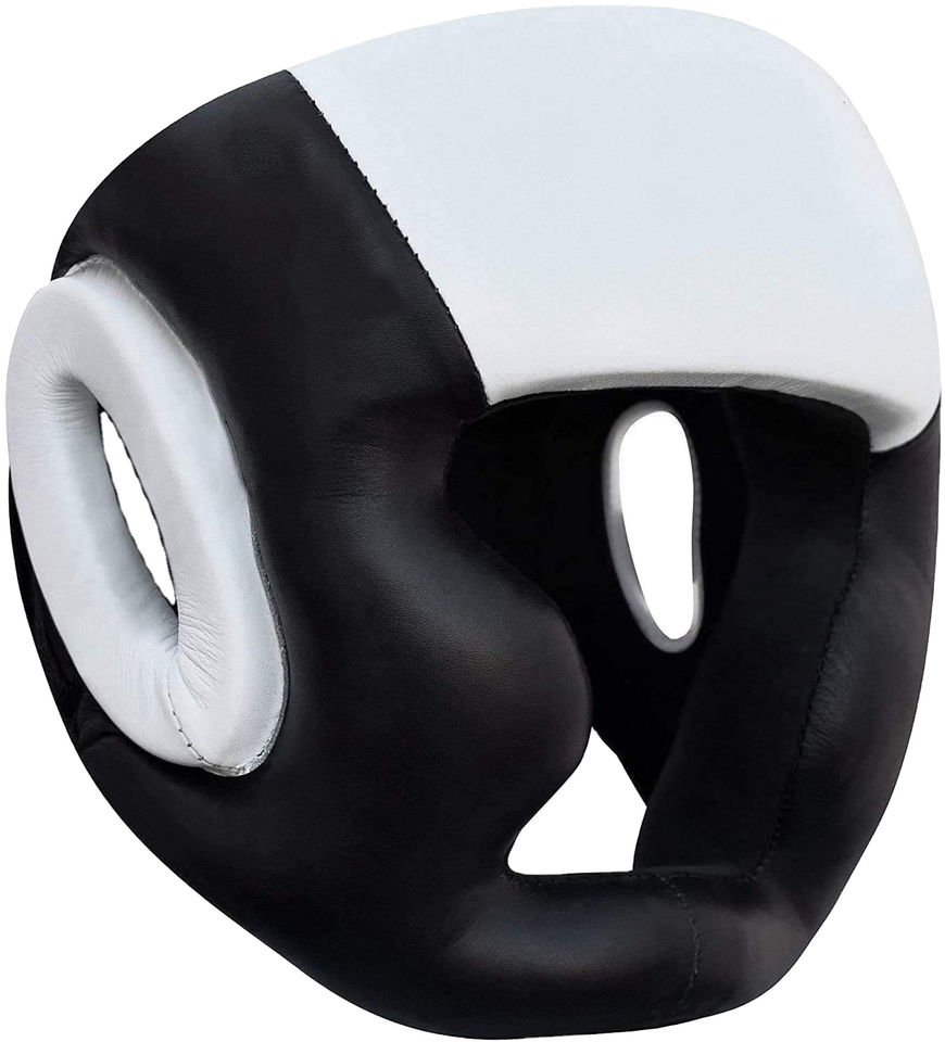 อุปกรณ์หัวมวยสำหรับฝึกซ้อมแบบมืออาชีพอุปกรณ์ป้องกันศีรษะสีขาวทำจากหนังแท้สำหรับต่อยมวยเตะ