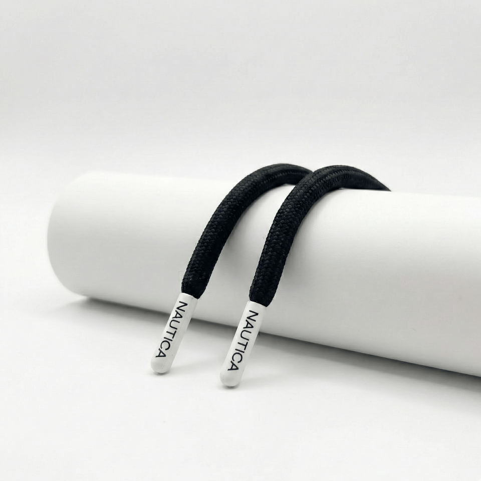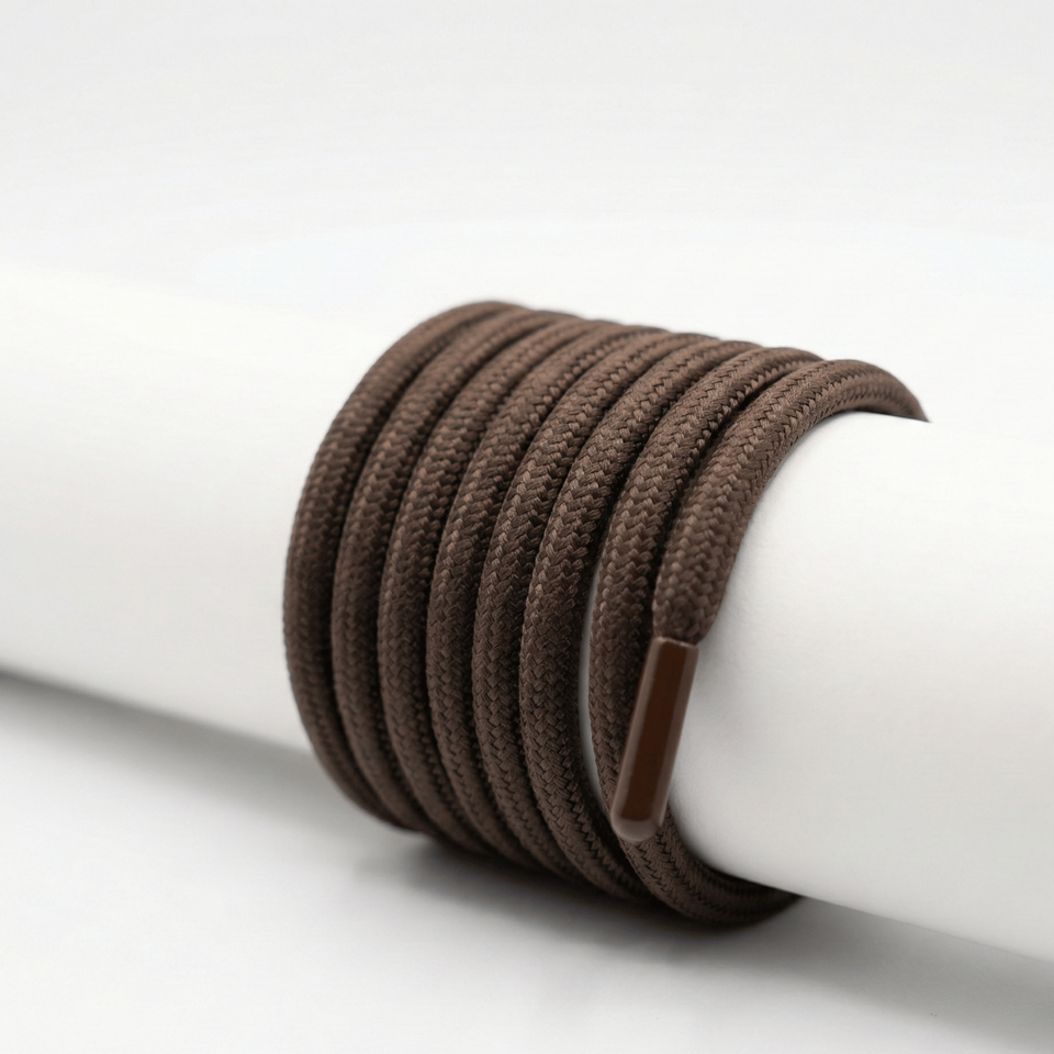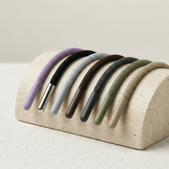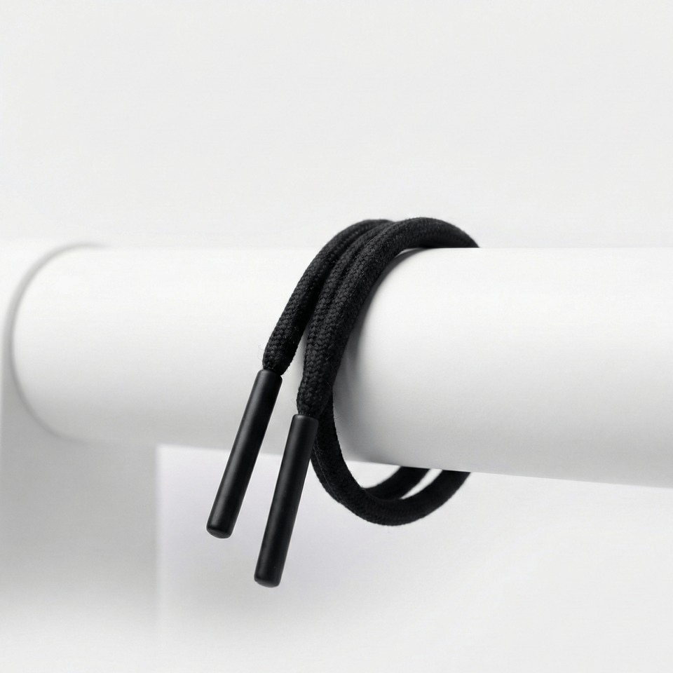 เชือกผูกถักแบบเป็นมิตรต่อสิ่งแวดล้อมพร้อมโลโก้สั่งทำพิเศษ สำหรับถุงใส่เสื้อผ้า แบบกลม/เคลือบแว็กซ์ ปลายเชือกทำจากโพลีเอสเตอร์ผสมฝ้าย (OEM) ขายส่ง