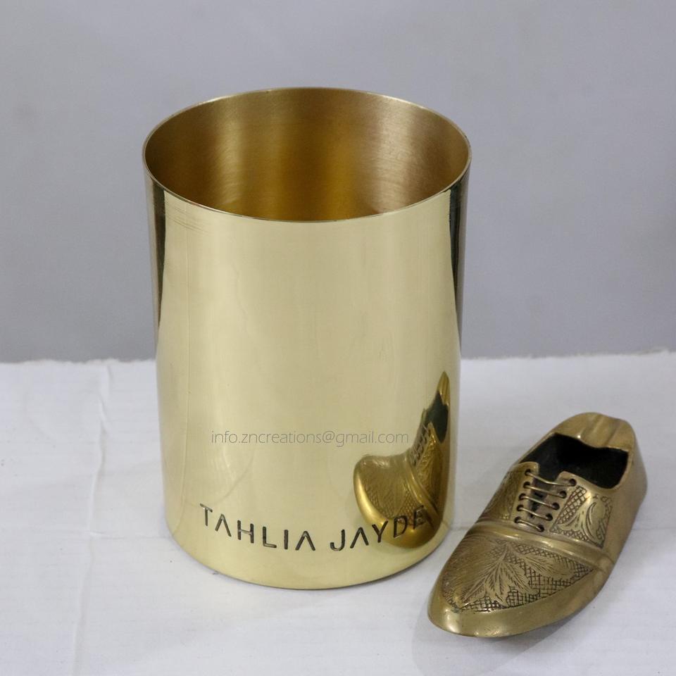 ภาชนะใส่เทียนทองเหลืองแบบมีโลโก้สั่งทำพิเศษ เคลือบเงา งานแฮนด์เมด ทนความร้อน ใช้งานได้ยาวนาน ตกแต่งบ้าน กลิ่นหอม